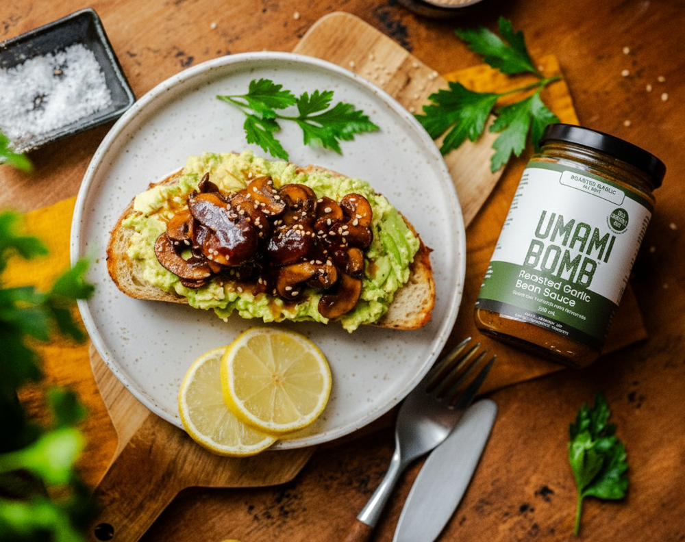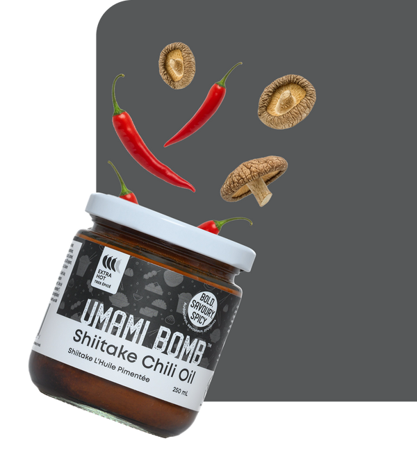 Umami is the savoury, addictive, mouthwatering flavour you get from ingredients like mushrooms. meats, and fermented foods. Umami Bomb gets its richness from shiitake + fermented ingredients + tomatoes.